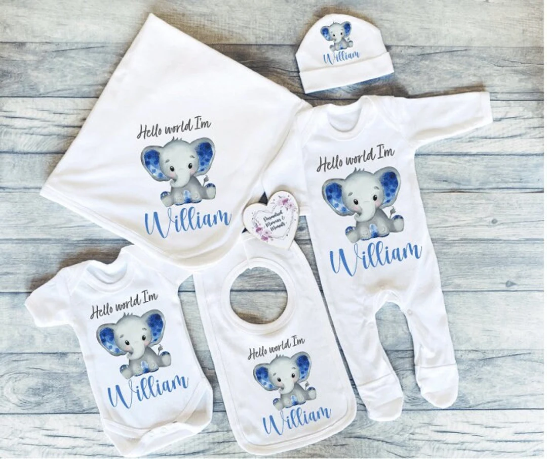 Paquete de 20 piezas de ropa bordada, personalizada para bebe (EJEMPLO)